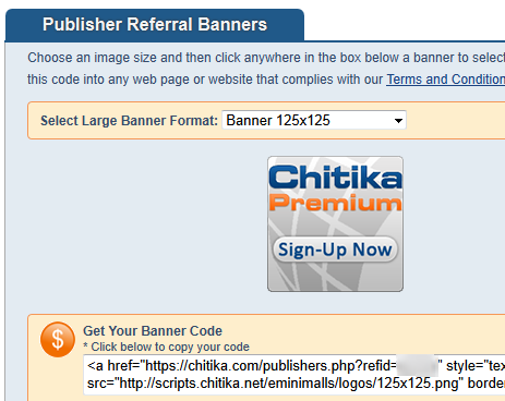 Once you are on the Publisher Referrals page, you have two options. You can either choose to have a referral link or a referral banner. The link is just that - a link..