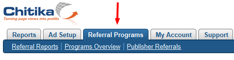 For an in-depth look at the Referral program, click on the "Programs Overview" link. To get started with your code, click on the "Publisher Referrals" link.