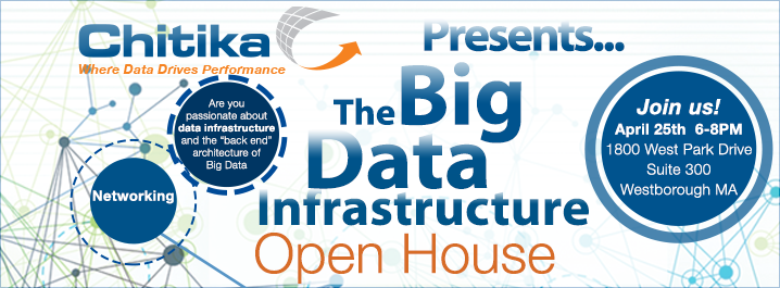 Are you driven by data infrastructure and the “back end” architecture of Big Data? If either of those topics are exciting to you, mark your calendar for April 25th from 6-8pm and join us at our Westborough, MA headquarters for the second installment of our Big Data Open House series, centered around Big Data Infrastructure.