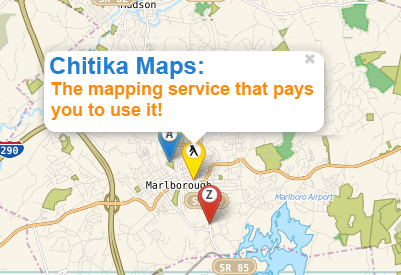 We want to invite you to try out our newest creation: Chitika Maps [Beta] - A full-featured mapping service. While other services are beginning to charge for map usage starting in 2012, our brand new maps are free to use. What's more - we'll pay you to use them.