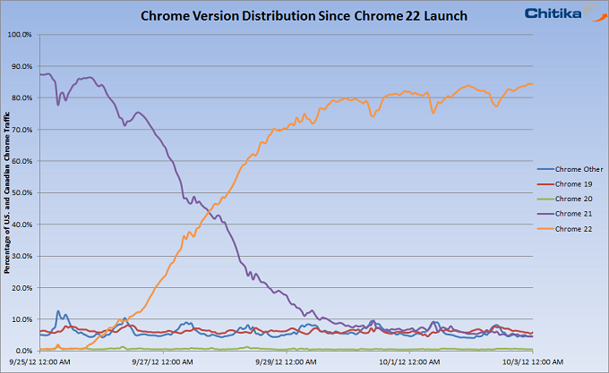 Chrome 22 Adoption Surpasses 85% One Week Following Debut