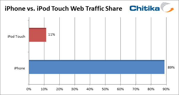 Due to the similarities of these two devices, Chitika Insights conducted a study to compare the Web usage rates between them. To quantify our latest study, we conducted a user agent analysis on hundreds of millions of ad impressions from August 29th, 2012 to September 4th, 2012. Looking solely at impressions coming from iPhones and the iPod we were able to compare the volume of Web traffic from each device.