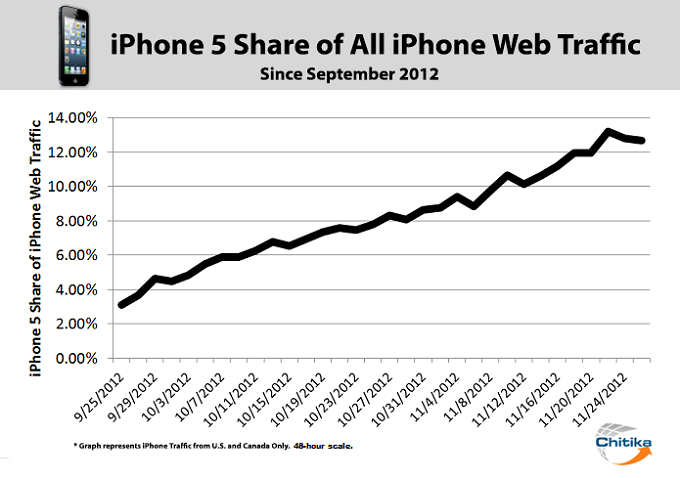 10 Weeks and Growing: iPhone 5 Constitutes Over 1/8 of all iPhone Web Traffic