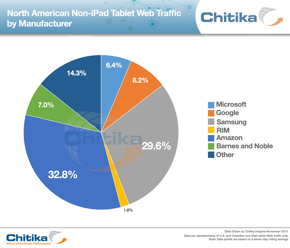 its North American release on October 22, 2013. Additionally, Surface tablet usage share as a whole continued to rise from October through November. As with the earlier analysis, due to North American Apple iPad users generating more than 80% of continental tablet Web traffic, Chitika Insights focused this study on non-iPad tablet traffic for