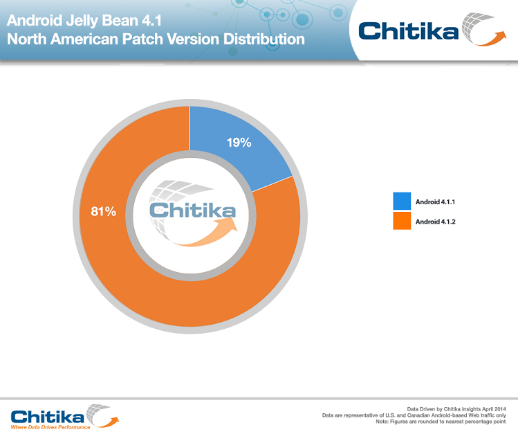 UPDATE (4/15/14): With Android 4.1.1 being the only version of Android exhibiting a vulnerability due to the Open SSL “Heartbleed” bug, Chitika Insights examined how North American Web traffic from Android 4.1 users breaks down by patch release.
