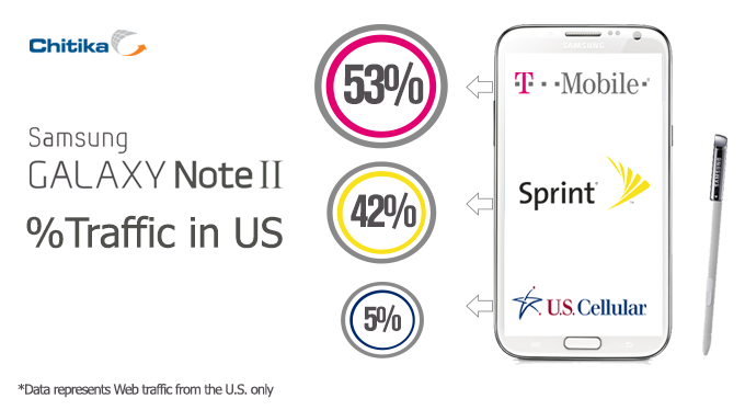 As each carrier possesses its own unique variant of the smartphone, we were able to generate an exact breakdown of Galaxy Note II traffic by carrier using 24 hours of data from October 28th, 2012.