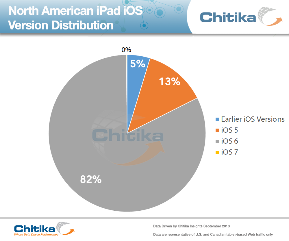 This past summer, Chitika Insights observed North American iOS 6 users generating more than 92% of iOS traffic on iPhones and more than 82% of iOS traffic on iPads. With the expected launch of one or more iPhones at Apple’s scheduled event on September 10th, iOS 7 and its revamped interface is set to get a great deal of attention. With this in mind, Chitika revisited overall iOS distribution through an analysis of tens of millions of iOS-based online ad impressions generated within the Chitika Ad Network from August 15th through August 21st, 2013.